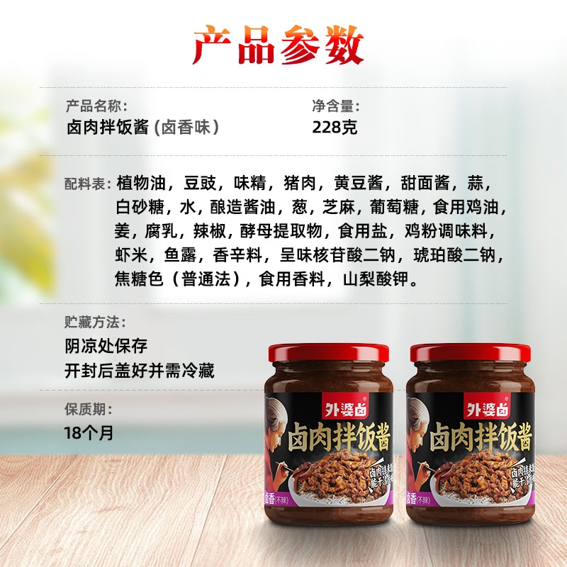 外婆卤肉拌饭酱228g 2猪肉酱原味香辣组合拌饭酱拌面调料下饭酱料