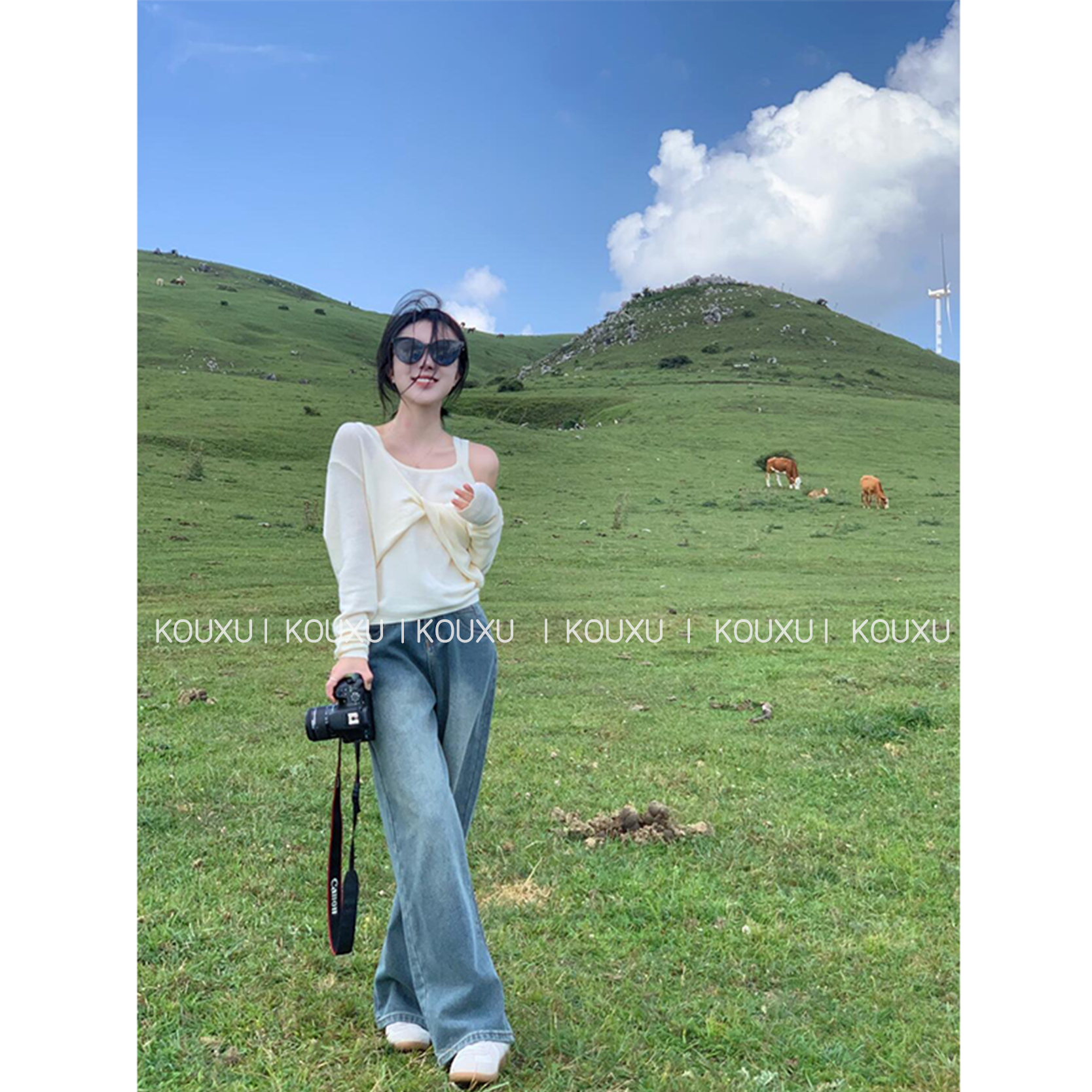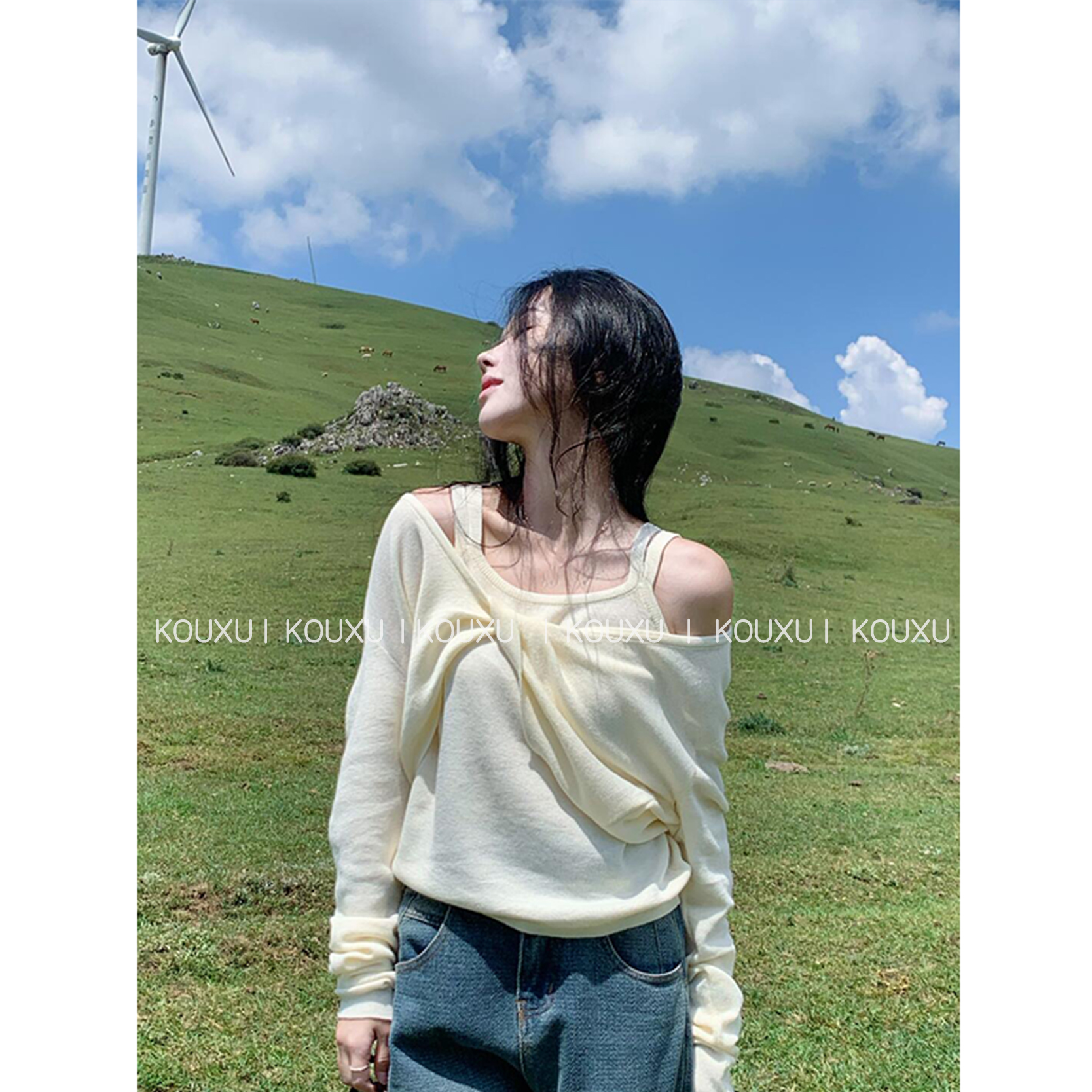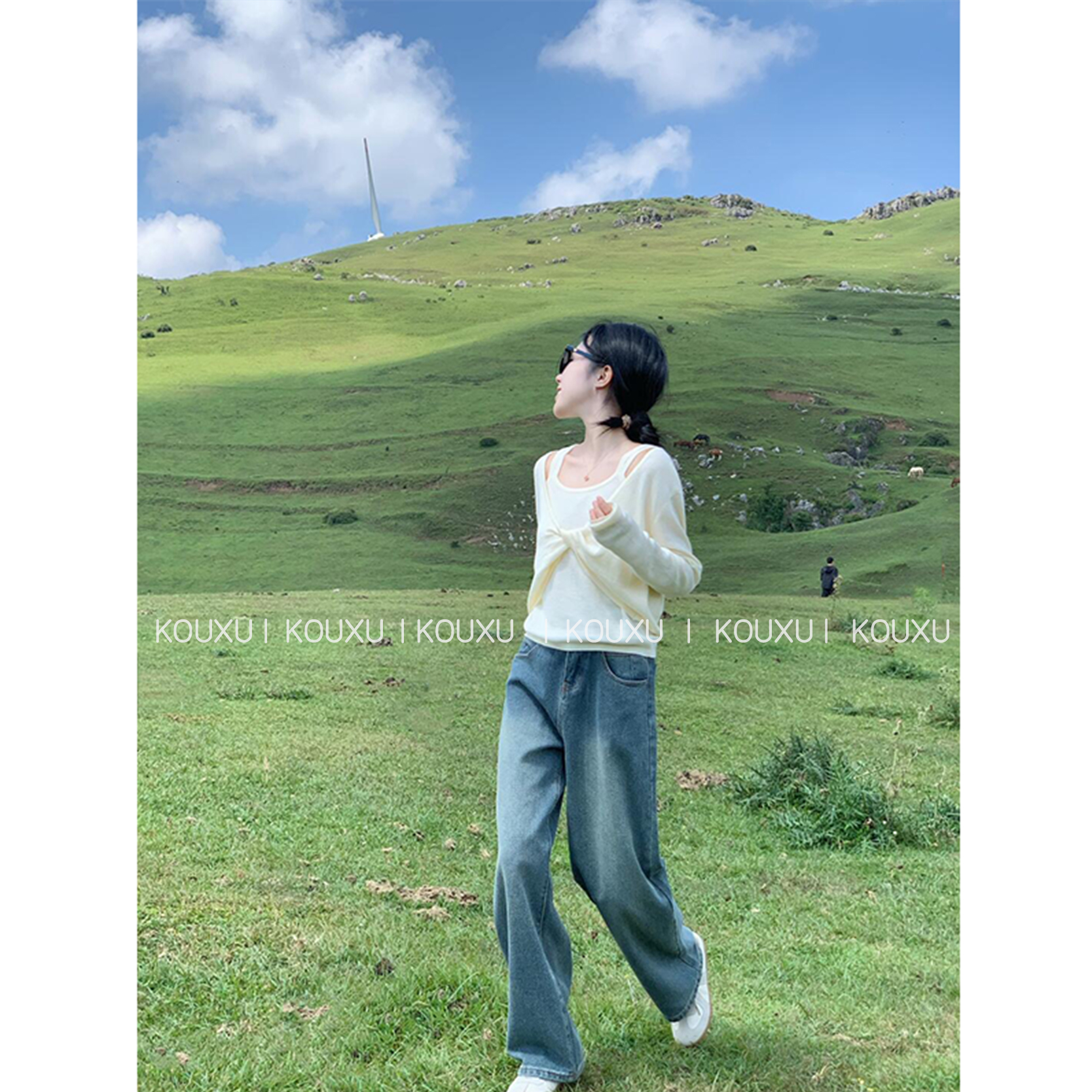 穿搭女士秋季 T恤直筒百搭阔腿裤 U领无袖 宽松短款 显瘦背心长袖 时尚