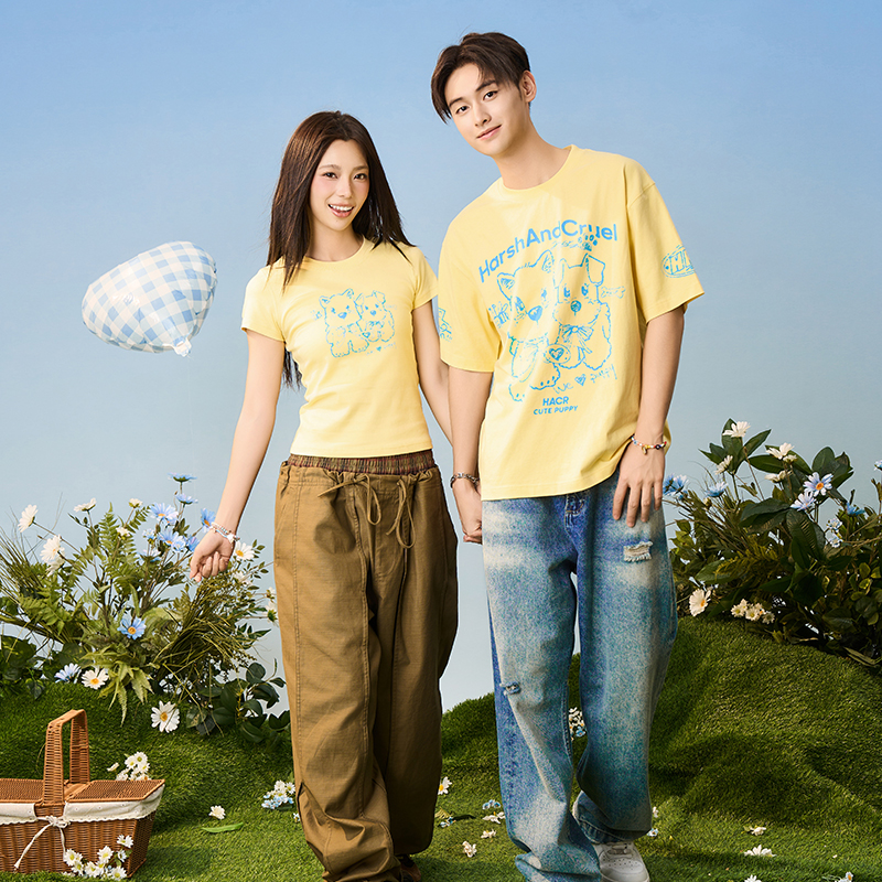 HACR|harshandcruel手绘童趣小狗宽松国潮短袖 T恤情侣男女
