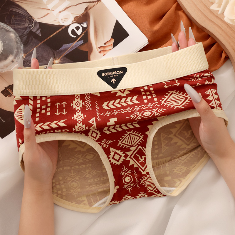 亲肤柔软不夹臀三角裤 裤 美式 透气短裤 头 复古印花抗菌底裤 女士内裤