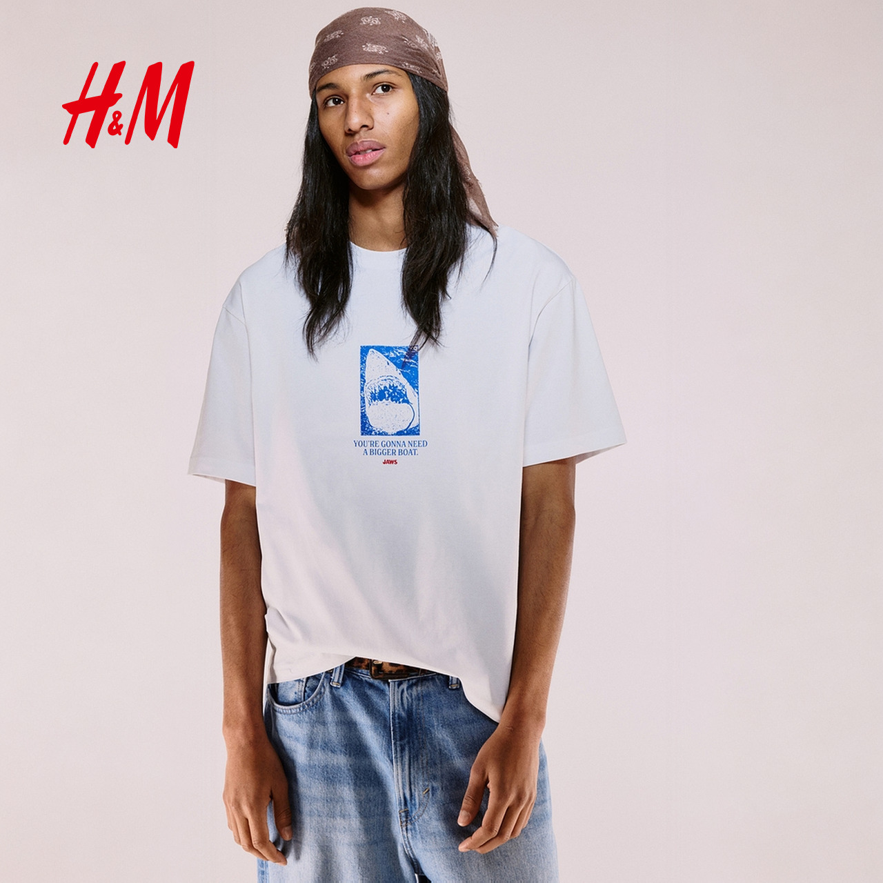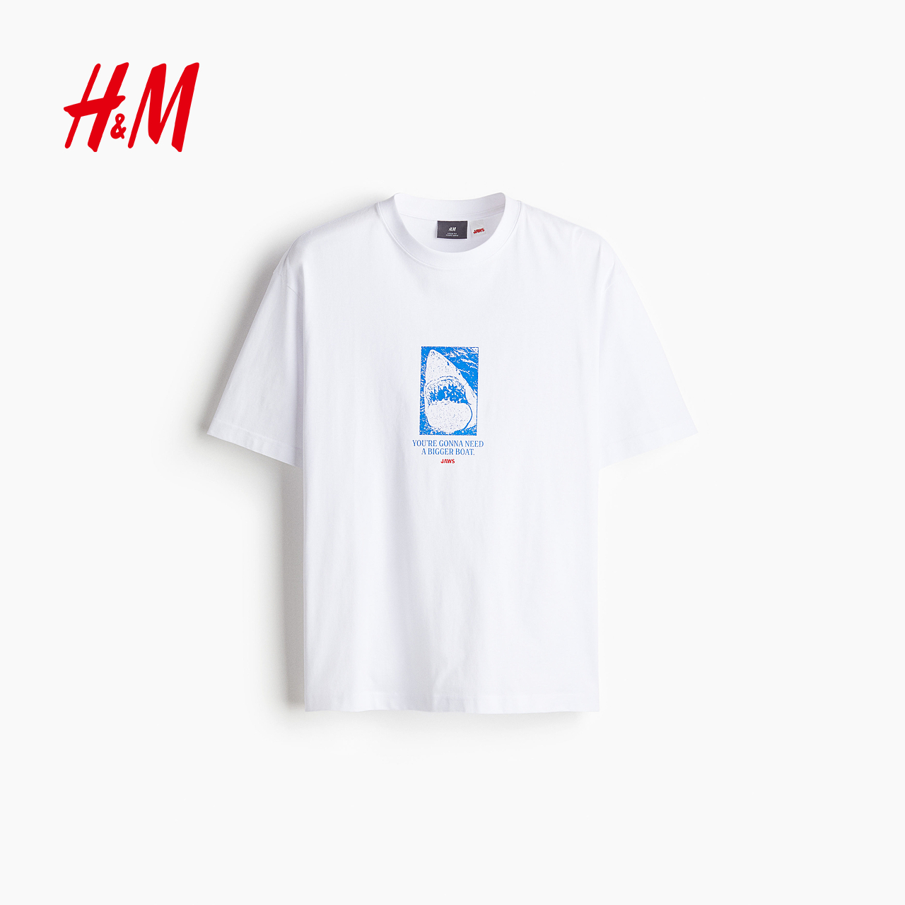 大白鲨 电影印花宽松落肩短袖 HM男装 T恤夏季 上衣0972640 女装