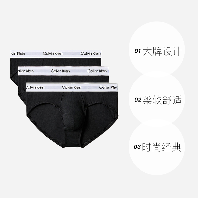 自营 棉质舒适透气三角内裤 Calvin 三条装 NB3962A KleinCK男士