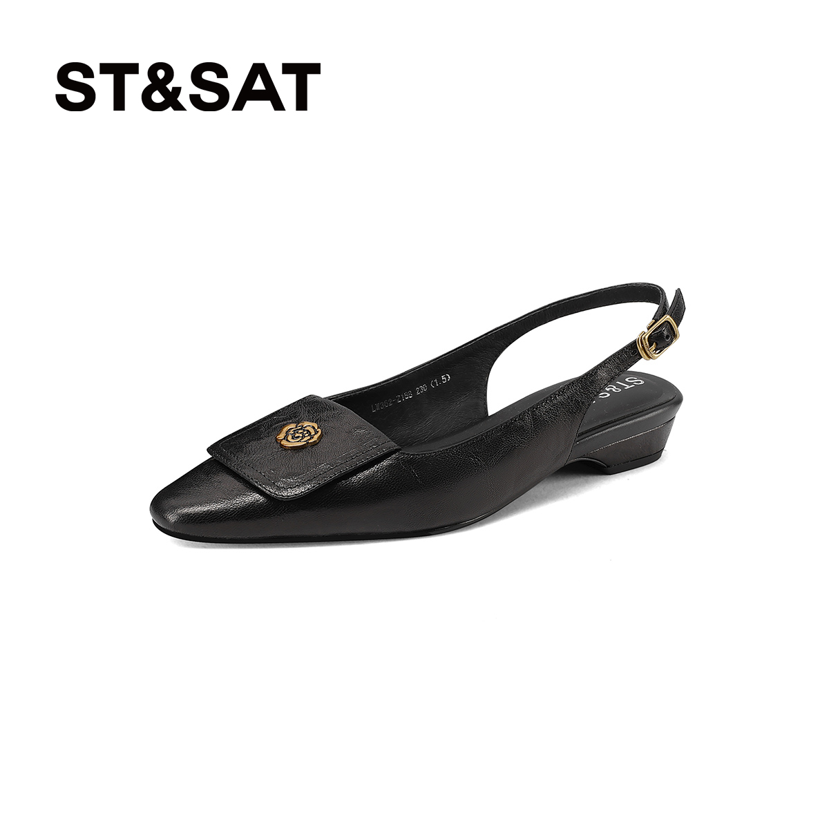 不累脚软底上班通勤鞋 星期六法式 女夏季 包头凉鞋 气质山茶花新款