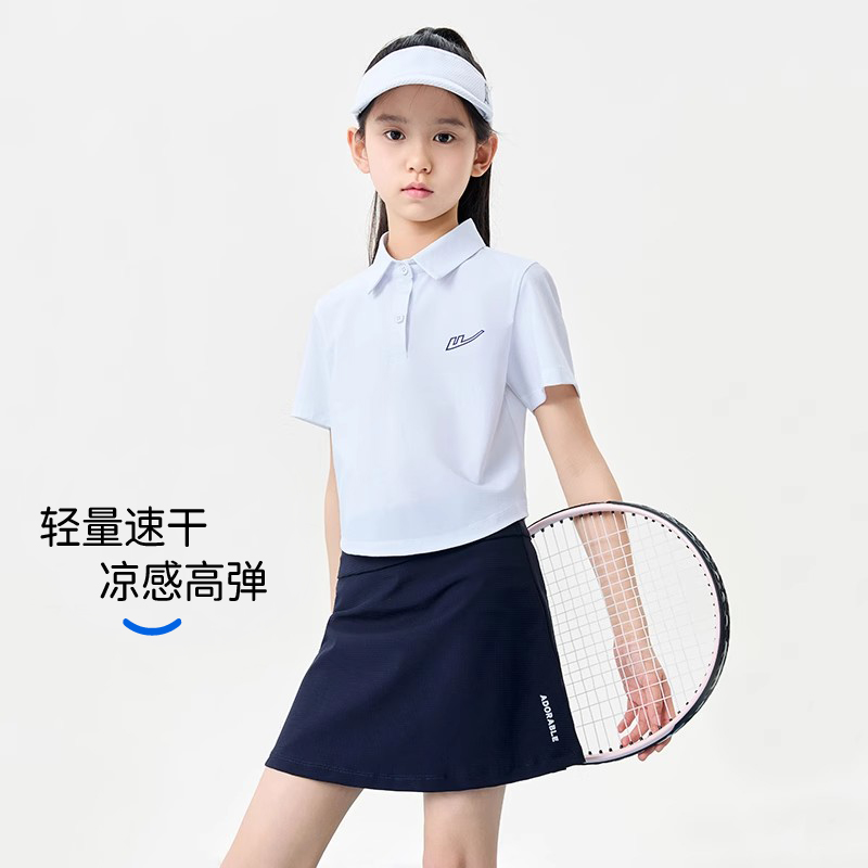 冰丝大童羽毛球训练服 女童polo领速干衣短袖 回力儿童运动套装 夏季