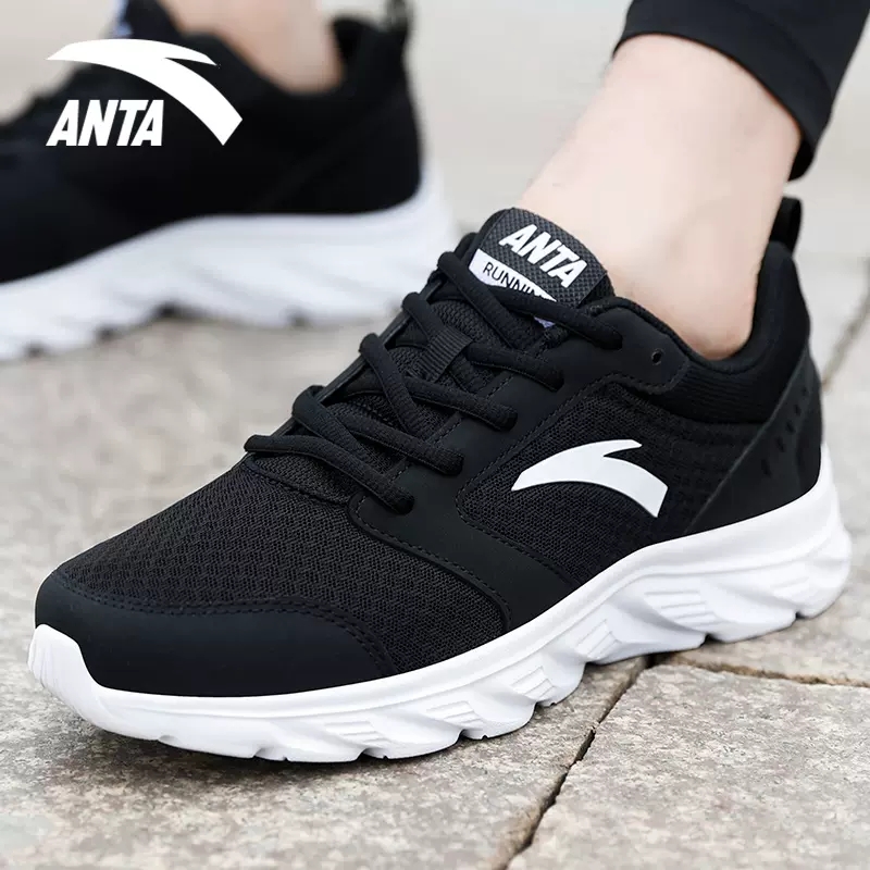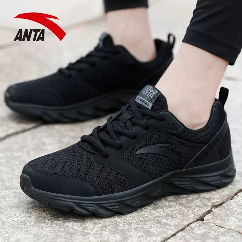 2025新款 夏季 网面减震网鞋 男士 安踏男鞋 运动鞋 黑色软底透气跑步鞋
