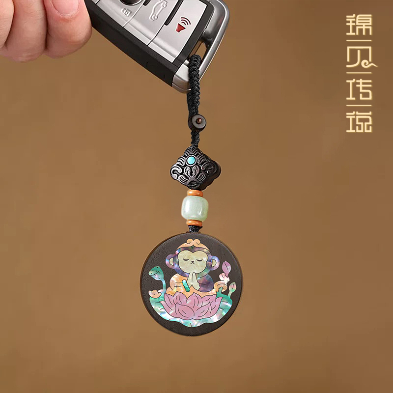 锦贝传说简约檀木质汽车钥匙扣挂饰生肖猴挂件饰品情侣礼物手机链