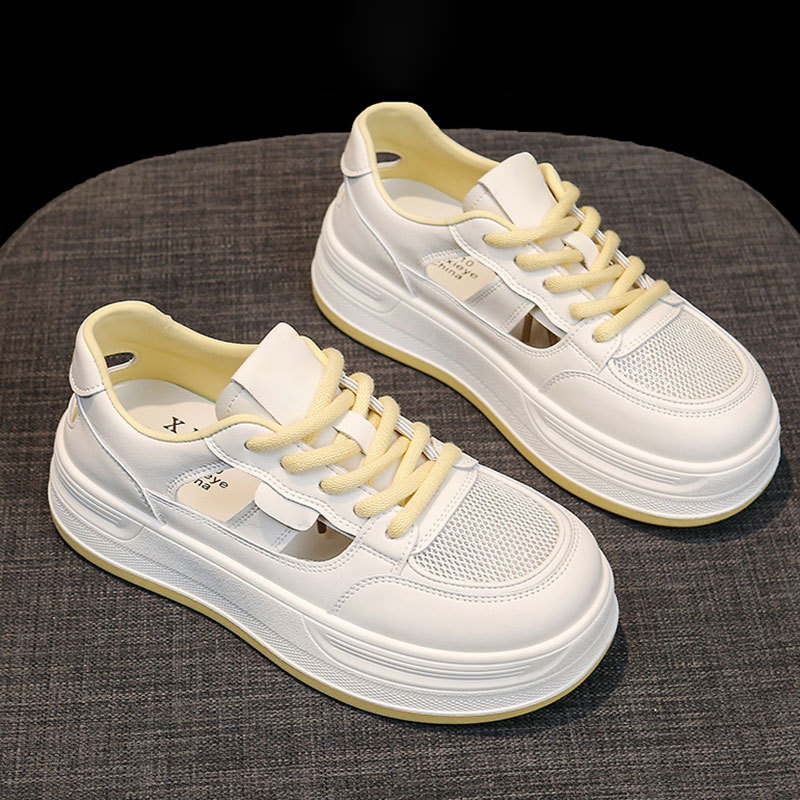 女款 女鞋 2025夏秋新款 厚底网面透气小白鞋 镂空洞洞鞋 真皮运动凉鞋