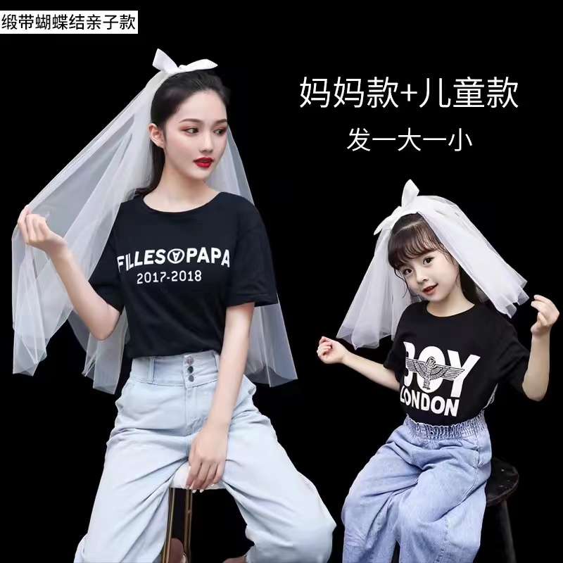 亲子儿童头纱母亲节活动拍照道具幼儿园活动成人头纱双层儿童头纱