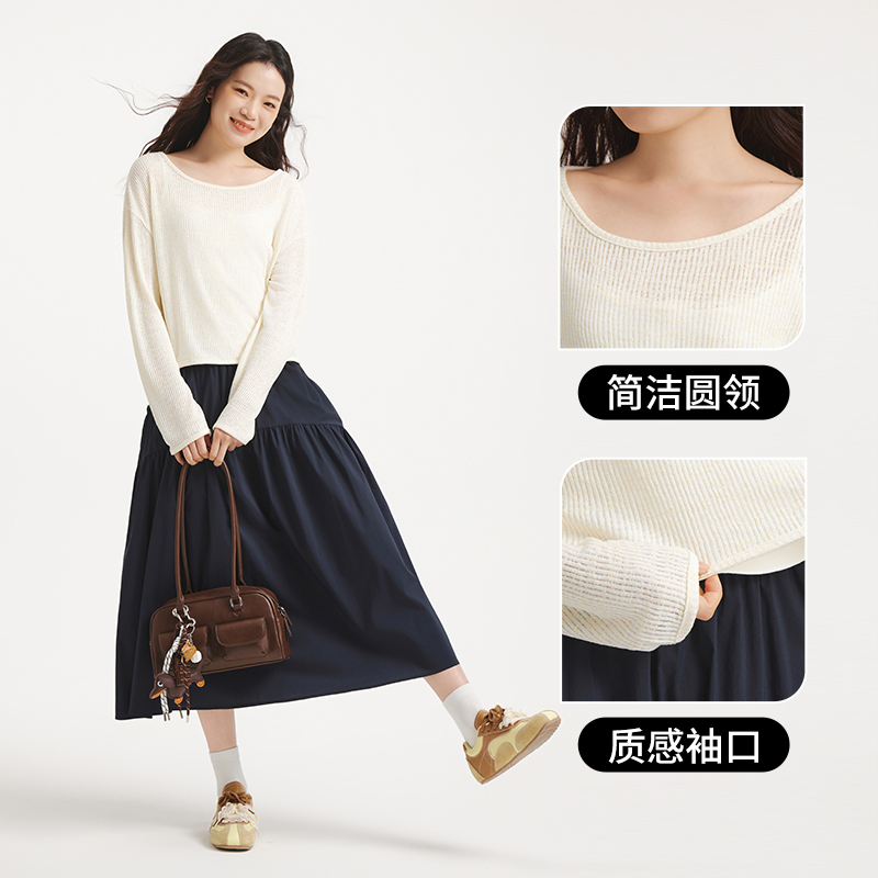 长袖 女士肌理长T恤轻薄宽松罩衫 打底 T恤上衣2025年秋季 热风长袖