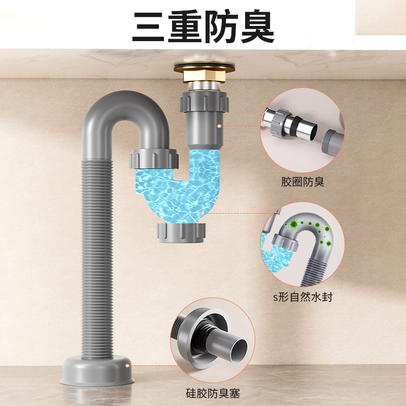 面盆防臭下水管脸盆S弯U型排水管套装 台盆洗手池下水器配件