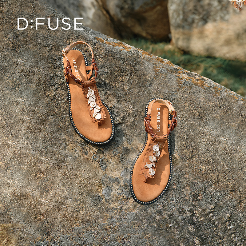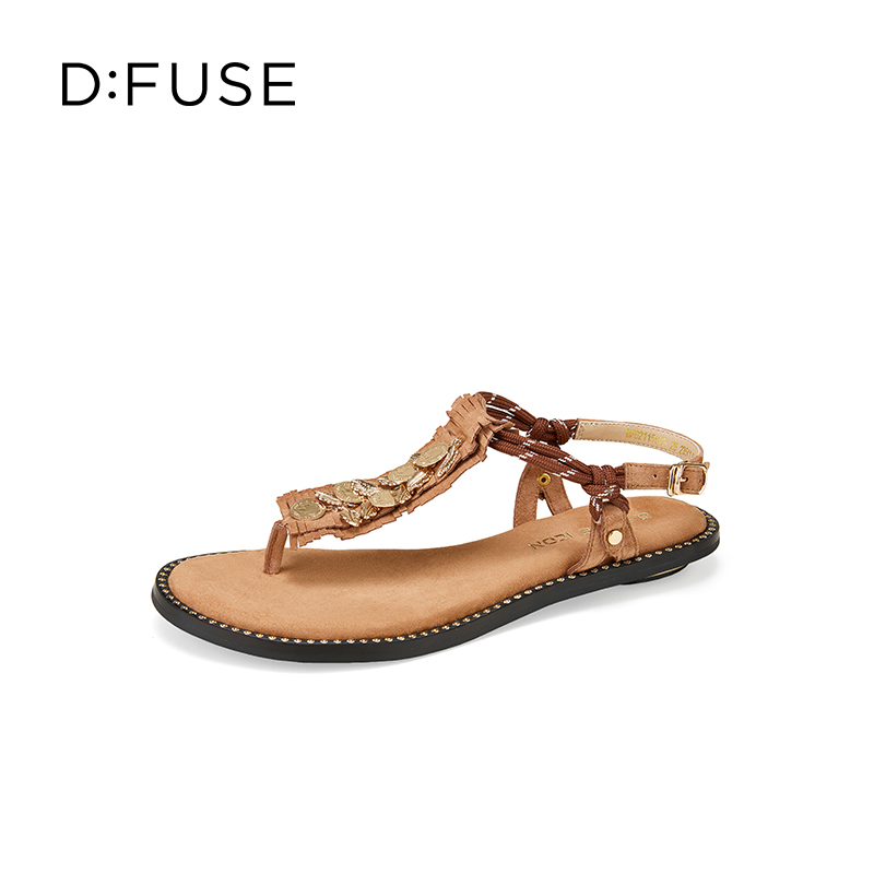 海边度假外穿 波西米亚风细带凉鞋 Dfuse迪芙斯2025夏新款 平底女鞋