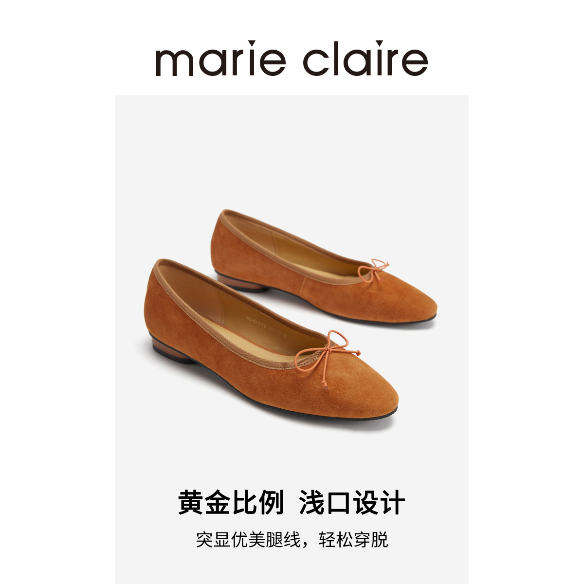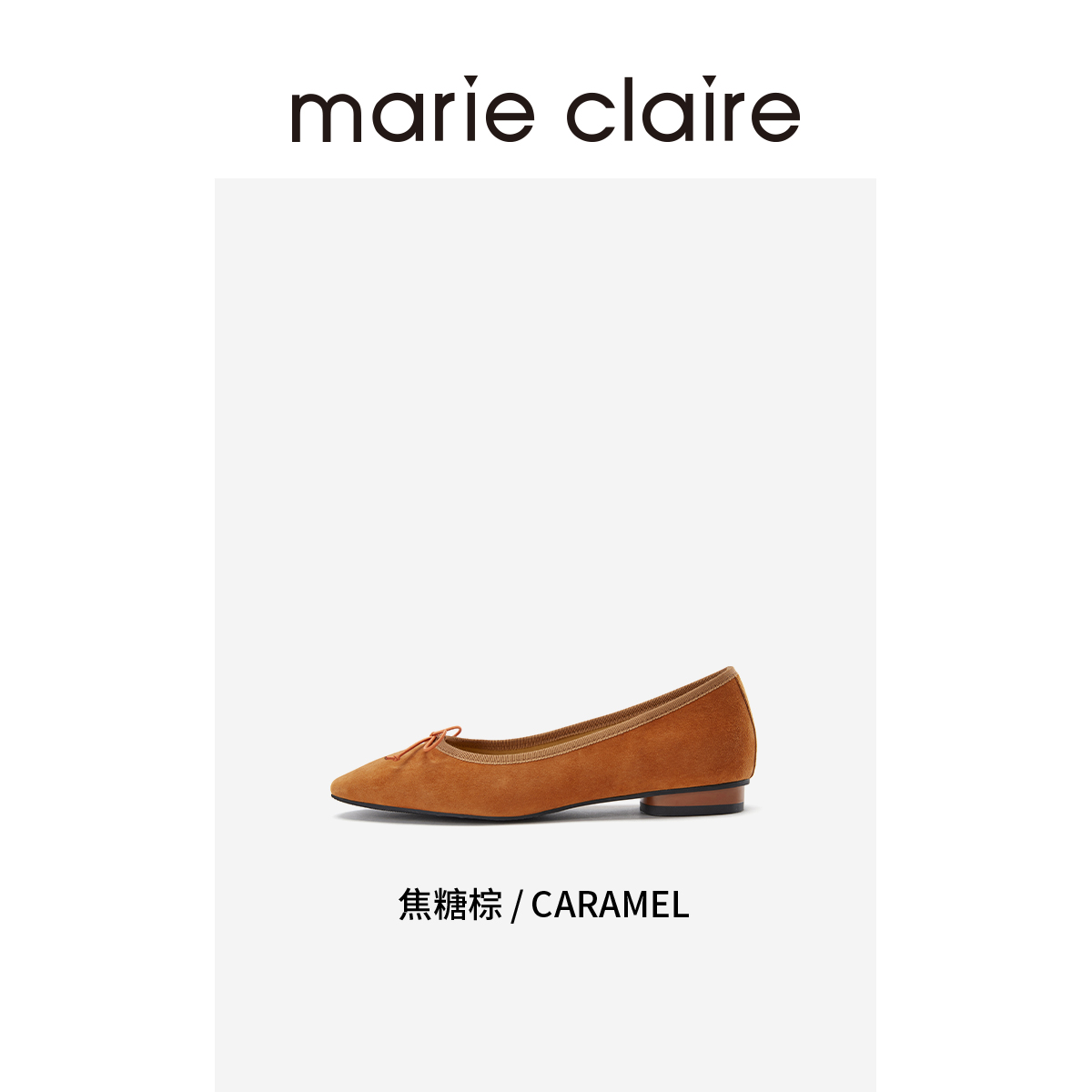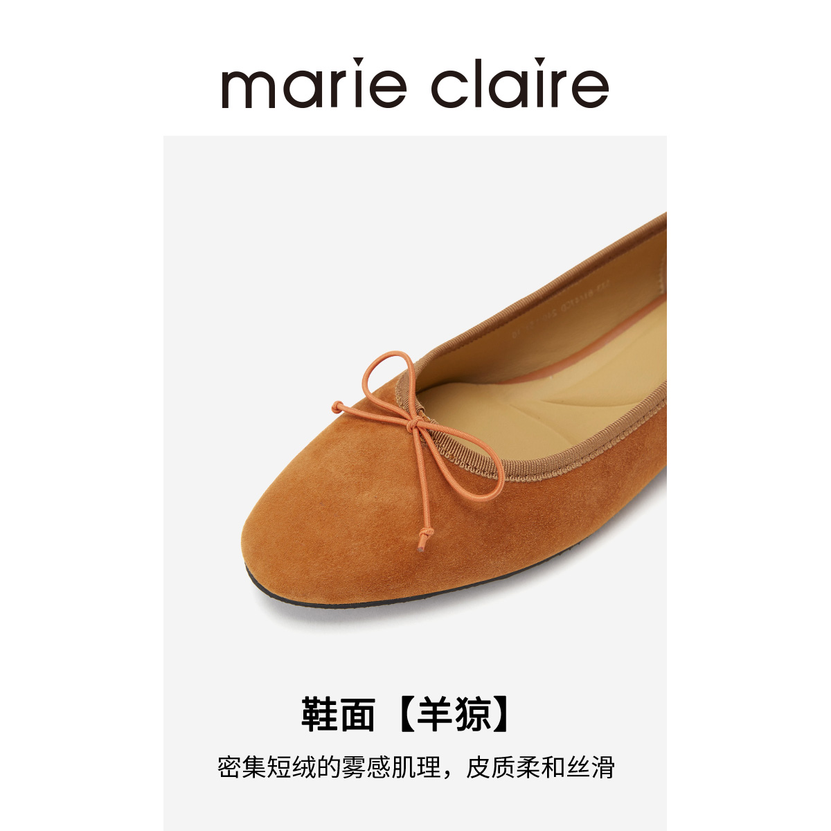marieclaire女鞋 单鞋 焦糖棕羊猄鹅蛋头平底芭蕾舞鞋 MC女鞋
