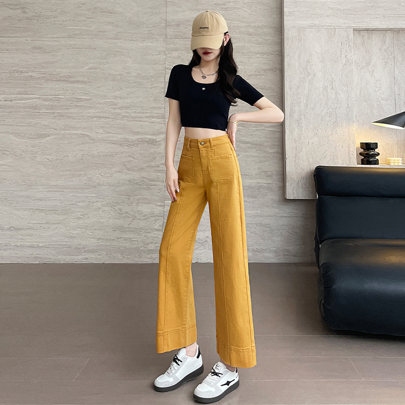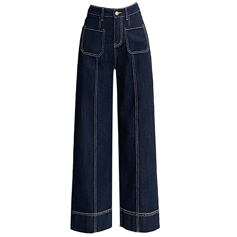 中线小个子八分九分法棍裤 丹宁色烟管牛仔裤 女2025春秋刺绣拼接裤