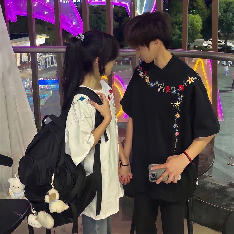 刺绣t恤重磅纯棉高级感痞帅夏季 男款 情侣上衣女 高街vibe短袖 美式