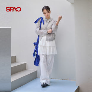 商务阔腿裤 SPAO韩国同款 女简约纯色宽松直筒休闲裤 新款 2025年夏季
