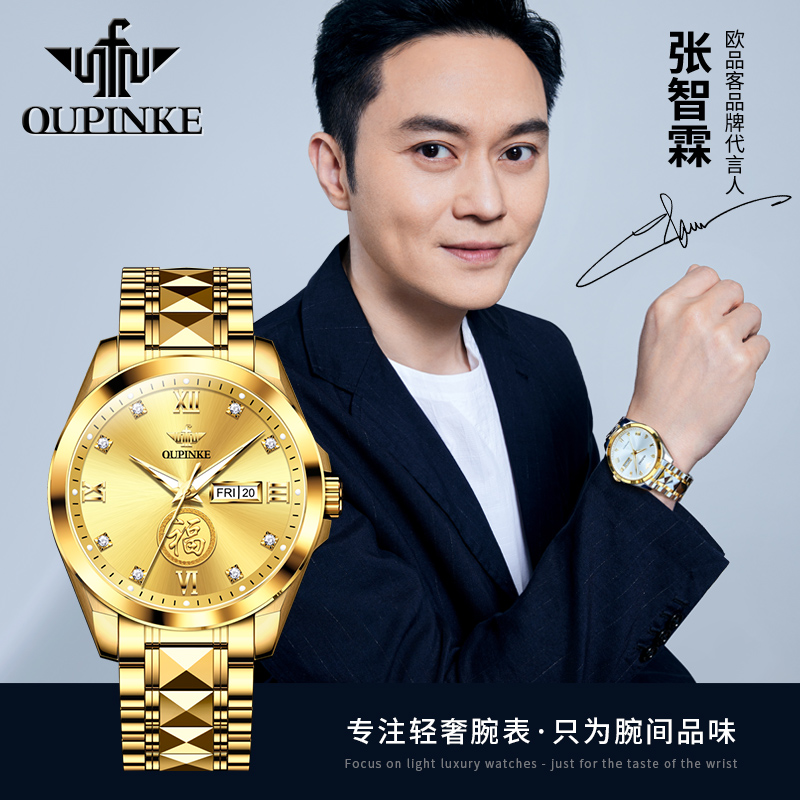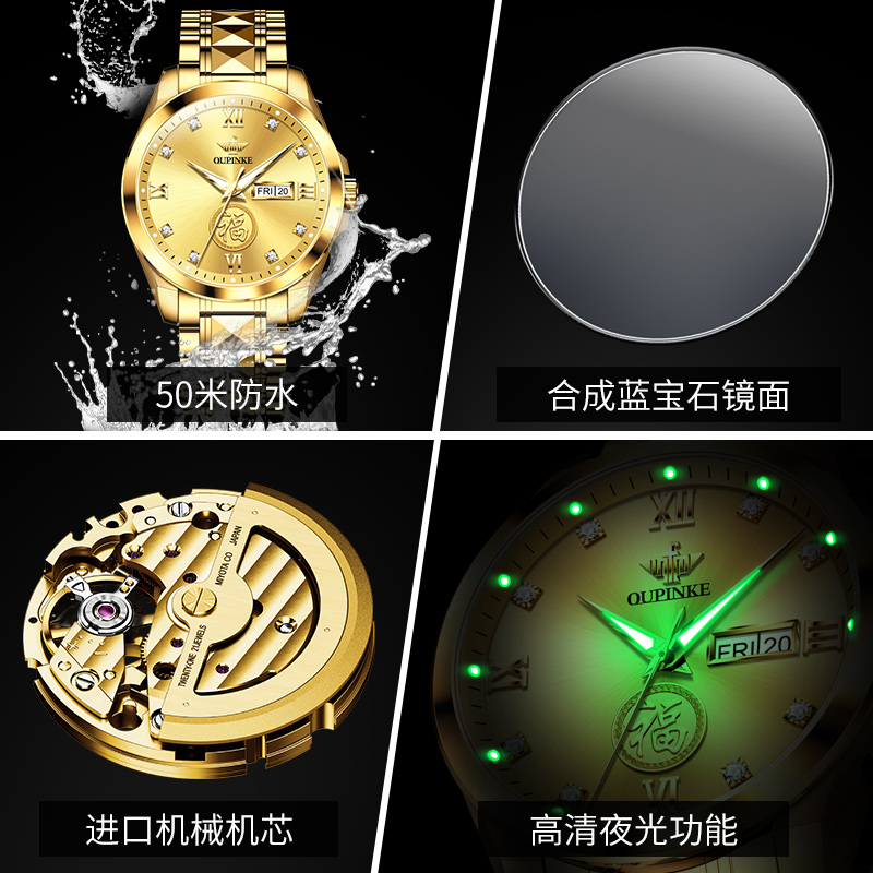 防水商务高档男款 真金浮雕手表男士 全自动机械表男瑞士欧品客正品