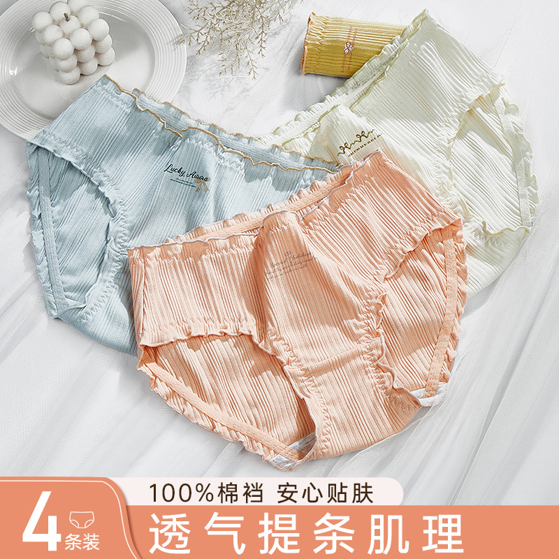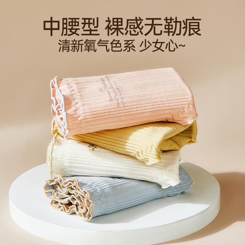 女士纯棉中腰女生内裤 不夹臀抗菌内裤 三角裤 新款 短裤 全棉时代内裤