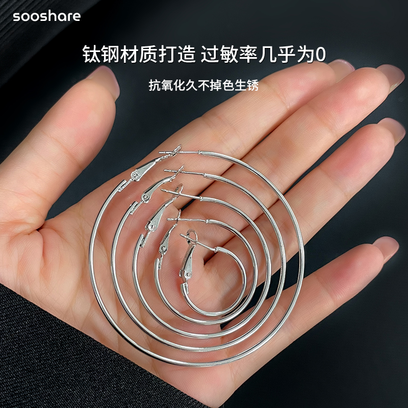 银色素圈耳环不掉色女2025新款 高级感夸张大圈圈圆圈轻奢耳饰 爆款