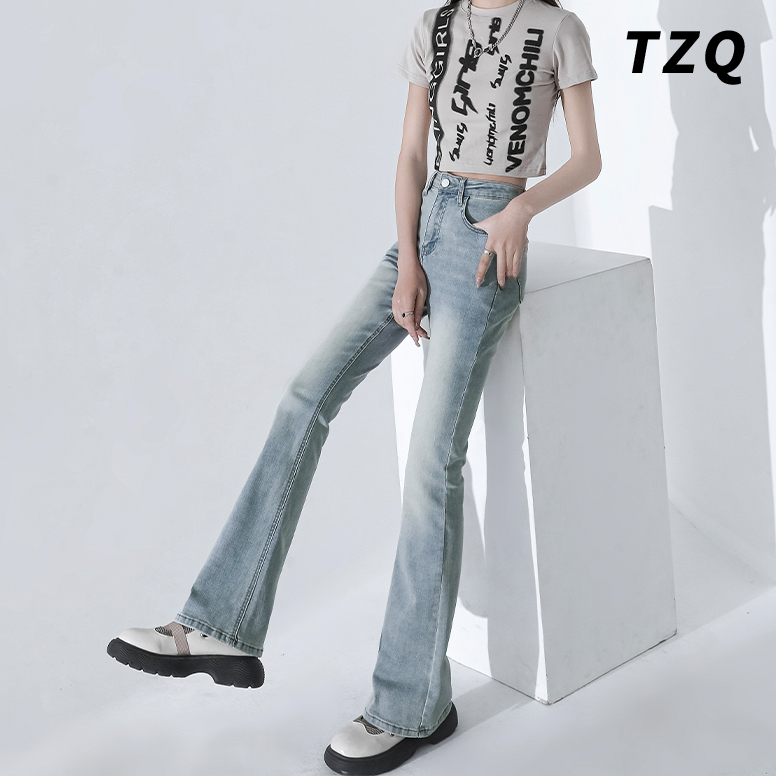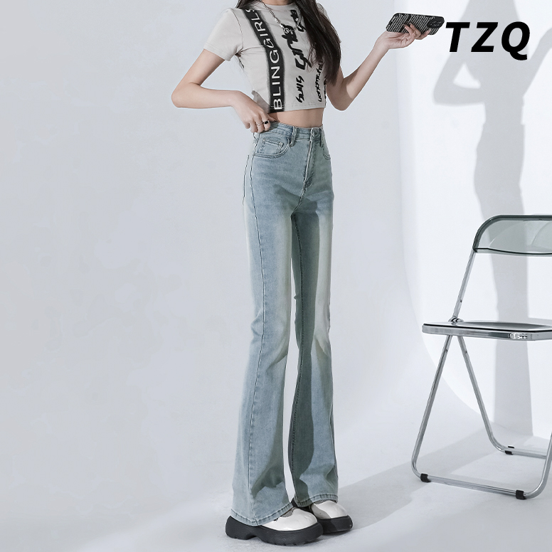 微喇牛仔裤 显瘦弹力马蹄喇叭裤 女爆款 高腰修身 子 2025新款 浅色美式