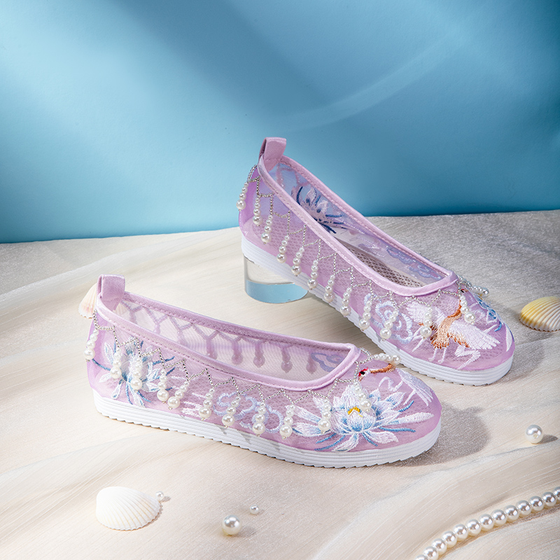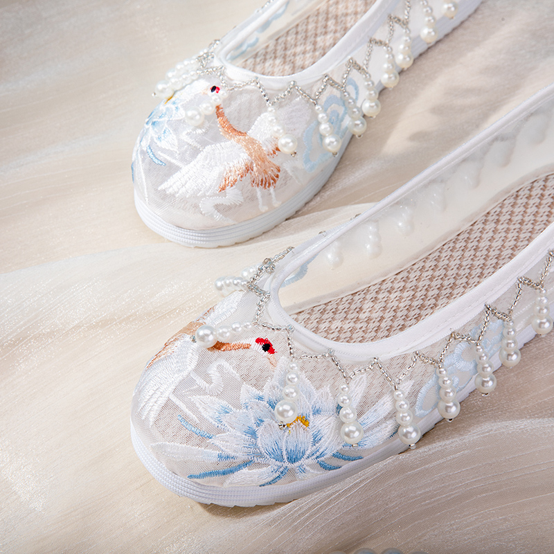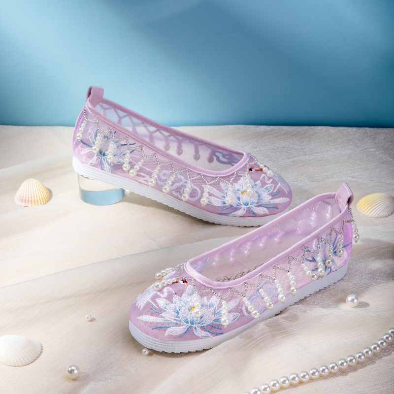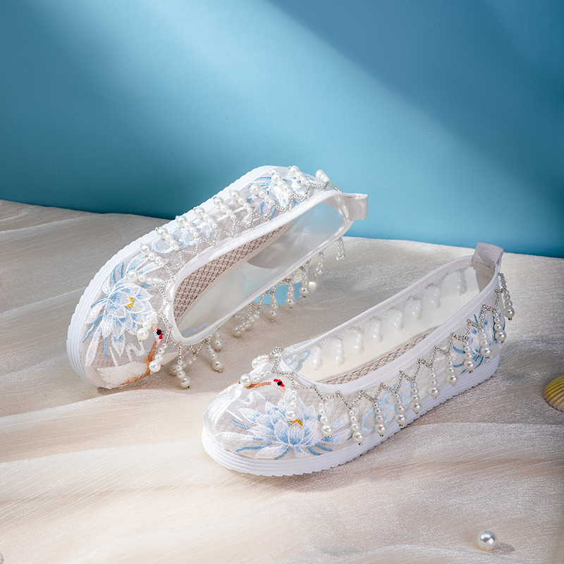 女内增高珍珠翘头履单鞋 古风布鞋 复古刺绣配古装 女款 绣花鞋 汉服鞋