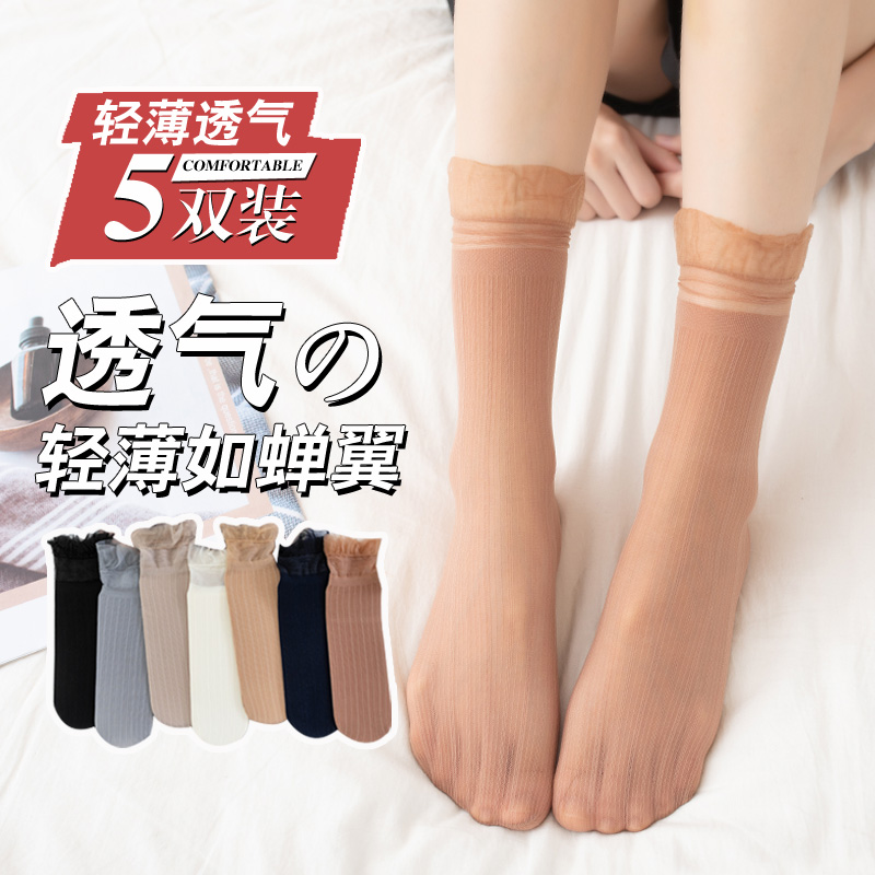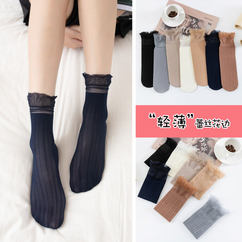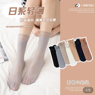 ins潮透明夏天透气女士长袜网红款 袜子女蕾丝花边中筒袜夏季 薄款