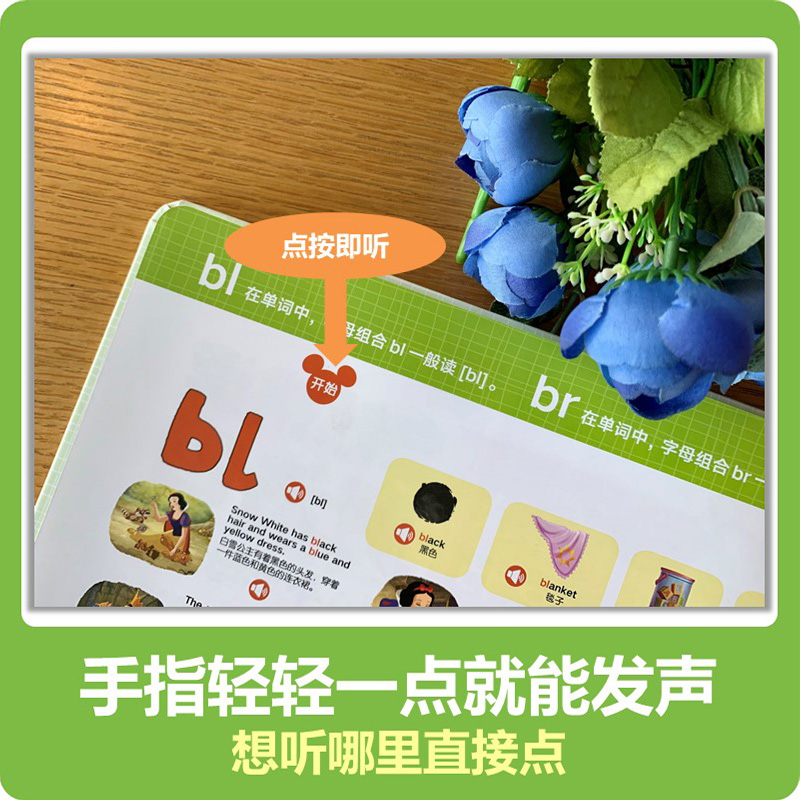 迪士尼手指点读发声书自然拼读魔法2儿童3 发音切换中英文问答互动 6岁幼儿英语启蒙有声书早教认知绘本触摸早教书少儿入门纯正美式