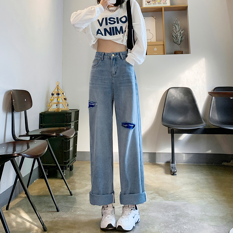 九分廓复古男友风宽松直筒牛仔长裤 新款 2025年秋季 热风女士牛仔裤