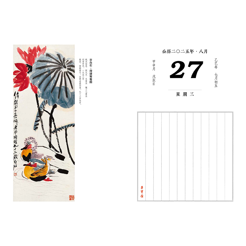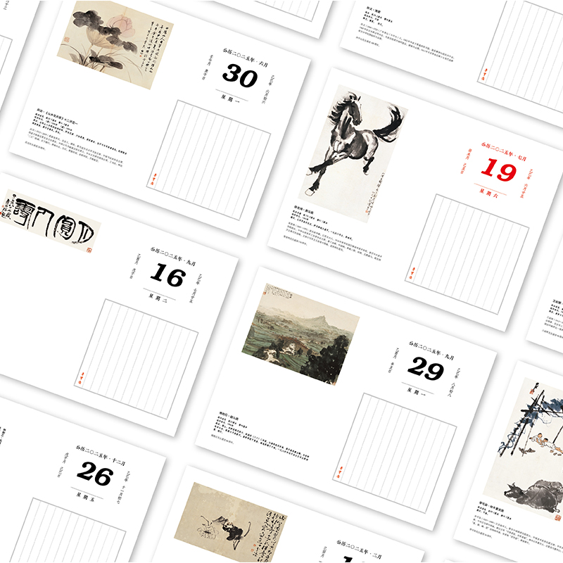 信笺记录传统文化元 乙巳2025蛇年 中国古典书画艺术赏析品鉴书画作品中式 珍藏书画选万年历 明清近现代等艺术珍品 荣宝斋日历台历