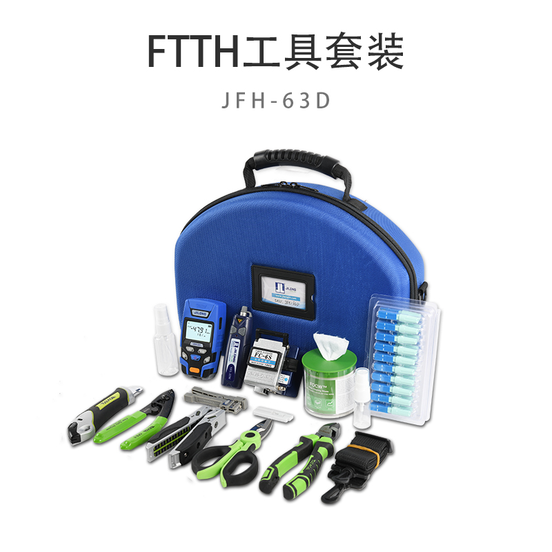 jilong南京吉隆ftth入户施工工具套装 米勒钳皮线钳酒精瓶光纤切割刀束管开剥器光功率计红光笔高档携带包
