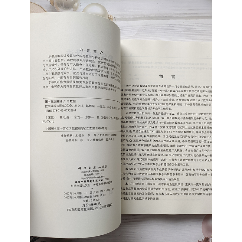 9787030735294 社 函数 完备性理论 微分与广义微分中值定理 实数 数学分析选讲 极限与连续性 科学出版 正版 大学教材书籍 书籍