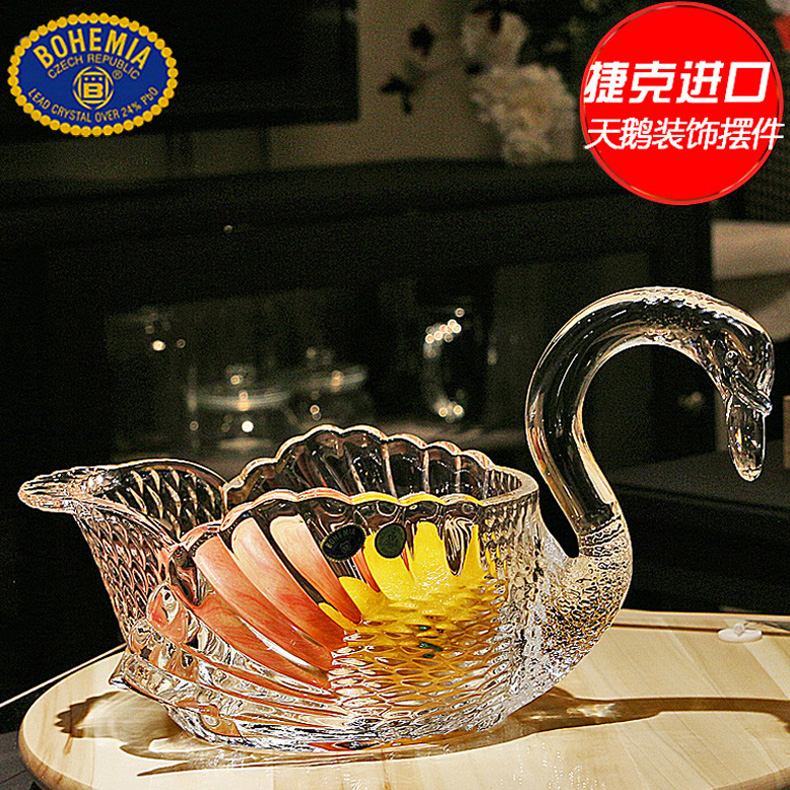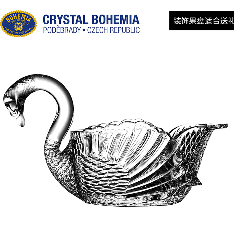 饰用品摆件 结婚居家装 捷克BOHEMIA原装 进口水晶玻璃天鹅果盘时尚