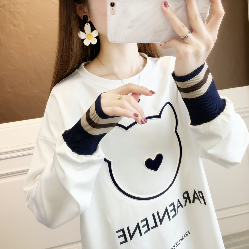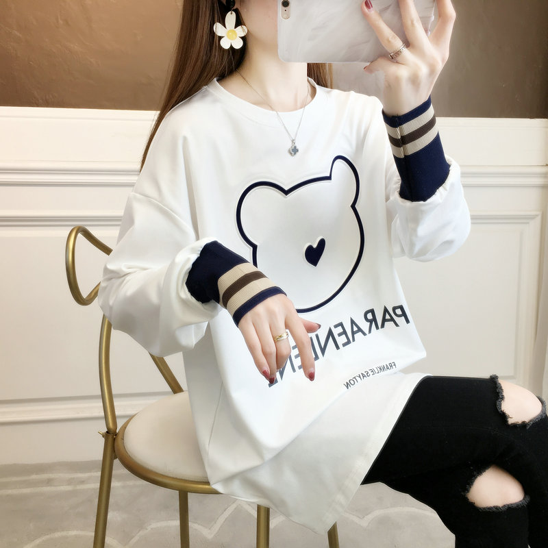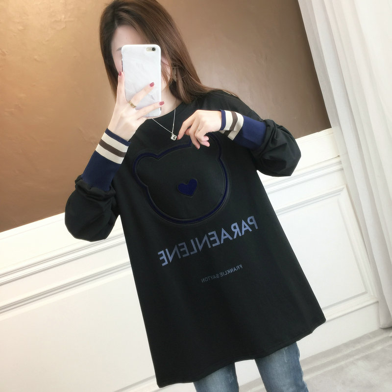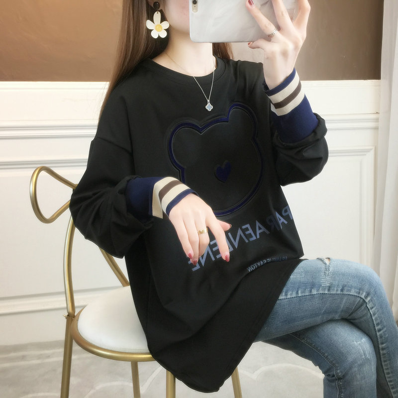 t恤女春秋季 德绒加绒打底衫 韩版 中长款 小熊上衣 宽松大码 早春长袖