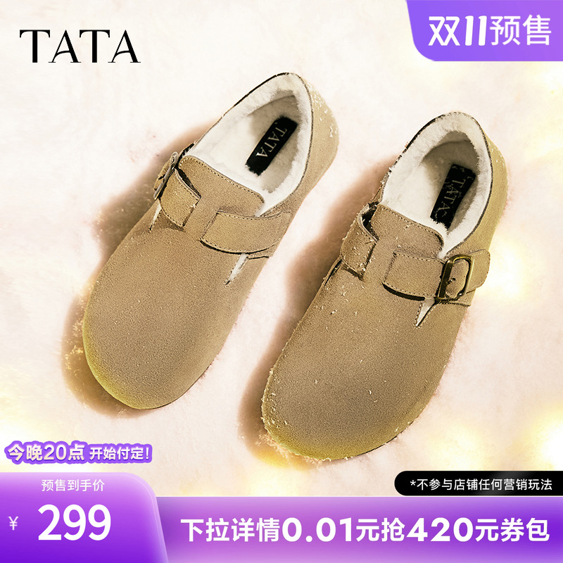 复古加绒勃肯鞋 TATA他她女鞋 女鞋 单鞋 CGW05AM5 毛毛鞋 双11预售