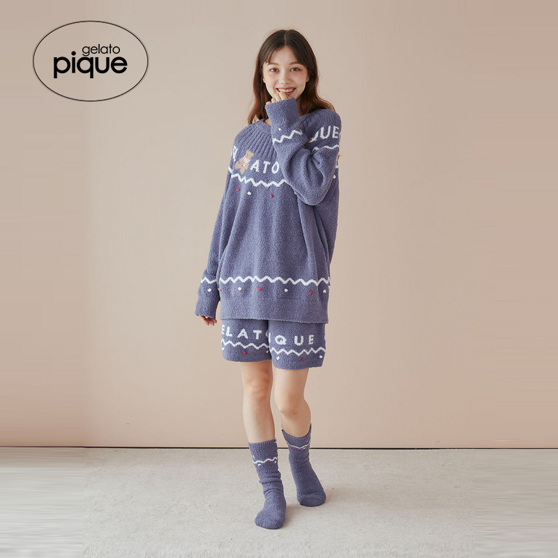 短裤 小熊半边绒长袖 PWNT245357 pique秋冬女睡衣套装 gelato