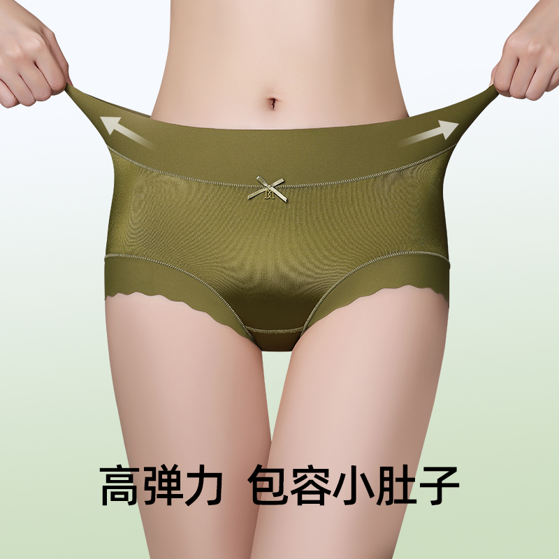 蔓雅夫人女士缎面舒适无痕桑蚕丝抗菌内裤 性感高腰塑形提臀三角裤