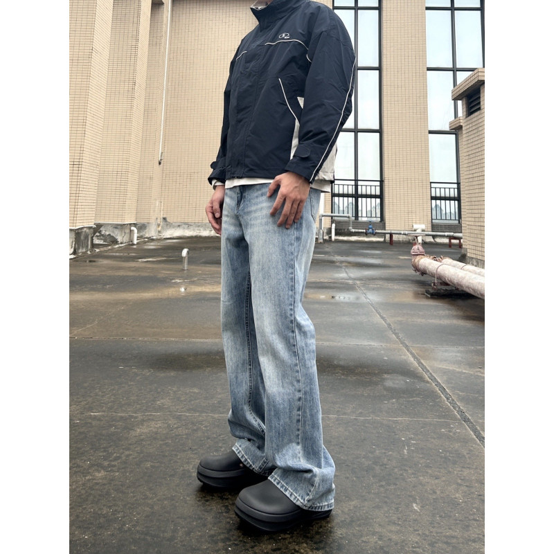 男士 宽松大码 水洗复古阔腿裤 秋季 潮牌休闲裤 直筒牛仔裤 美式 子 新款
