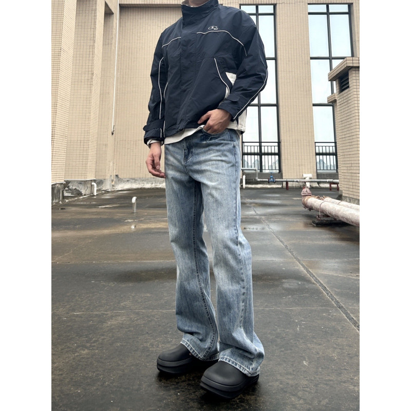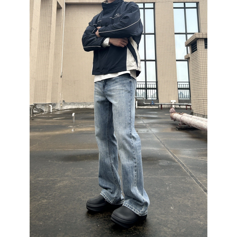 子男款 男生高街vibe潮牌裤 直筒痞帅百搭学生 黑色微喇牛仔裤 美式