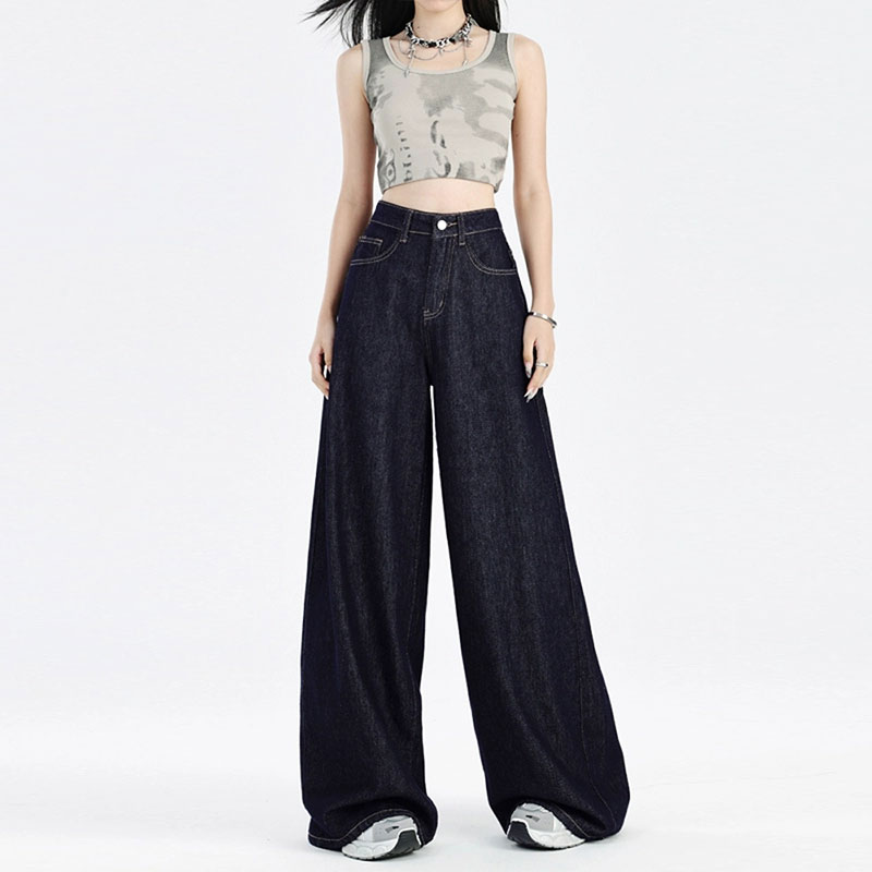 潮牌直筒休闲裤 黑色牛仔裤 子复古vibe宽松阔腿裤 秋冬青少年裤 男款