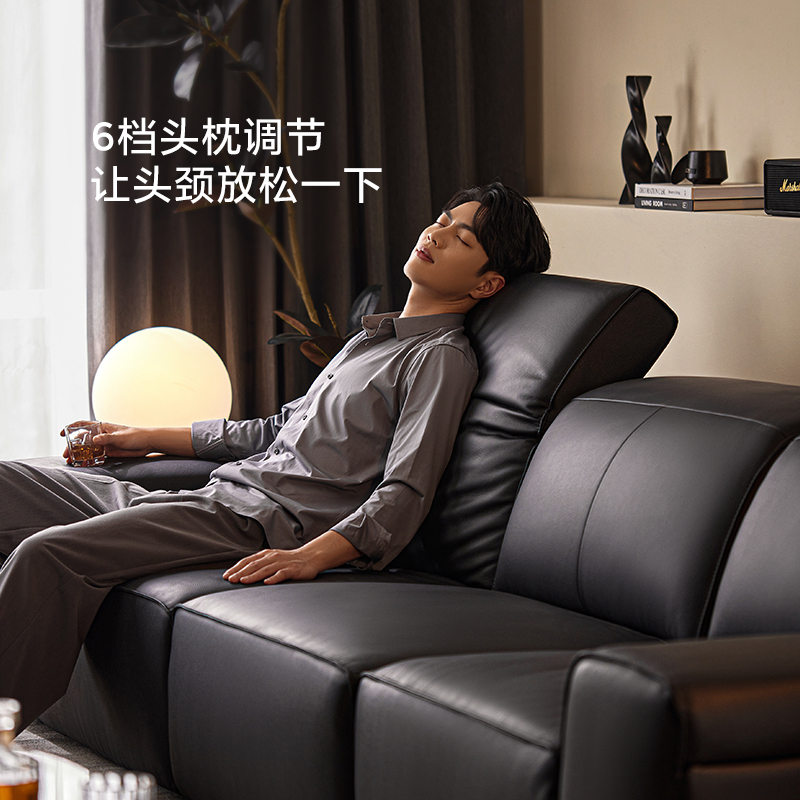 林氏家居意式 黑色沙发林氏木业政府补贴 黑牛真皮沙发客厅年新款