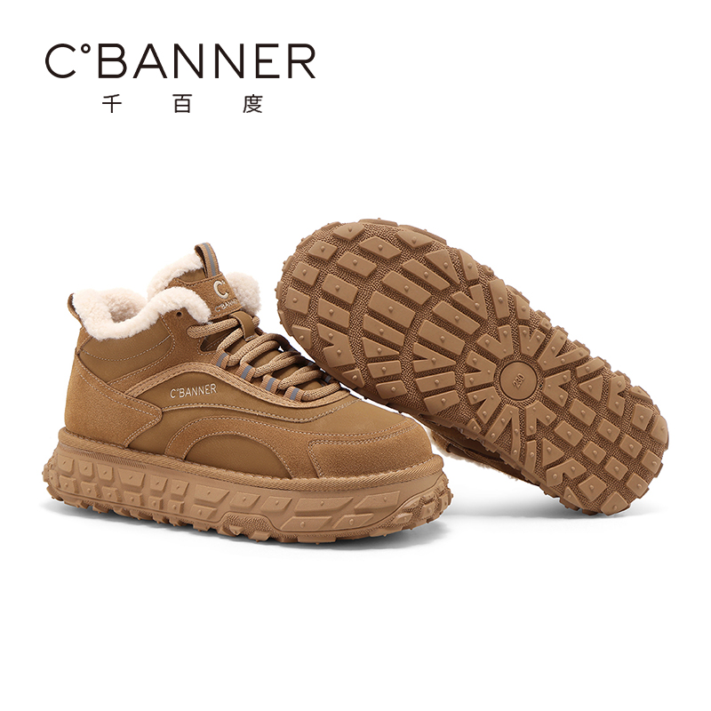 子高帮鞋 千百度休闲棉鞋 加绒加厚舒适厚底雪地毛毛鞋 新款 女冬季
