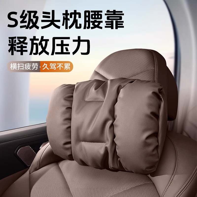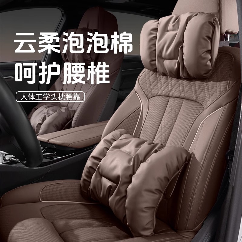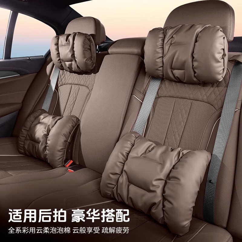 通用靠垫 抗污皮四季 汽车头枕护颈枕2024车载高档新款 座椅腰靠套装
