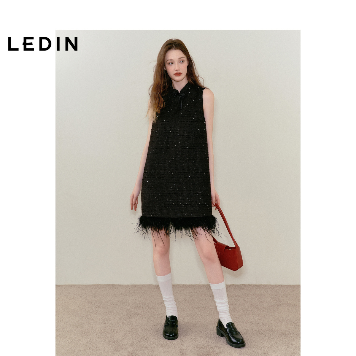 宽松领口珠片花朵裙子 新款 乐町韩系千金感连衣裙女装 2025年秋季