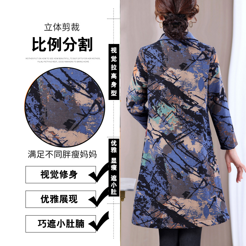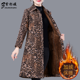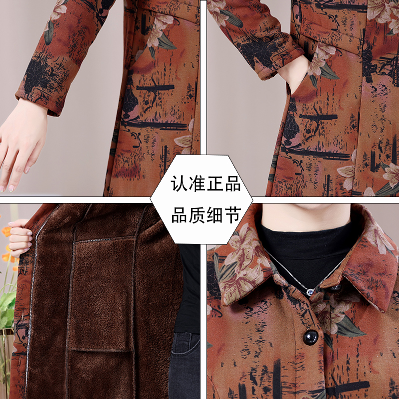 气质薄棉衣外套中老年女款 风衣时尚 加绒保暖中长款 中年妈妈秋冬季
