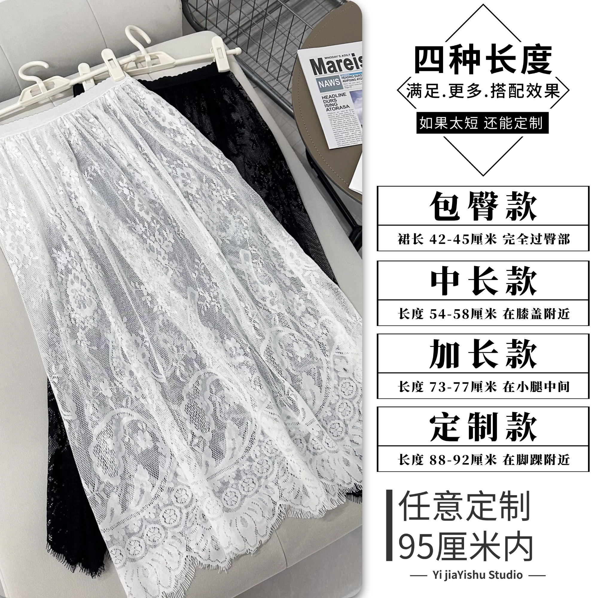 洋气中长款 叠穿网纱旗袍半身裙 打底裙高腰显瘦蕾丝A字裙子春秋季