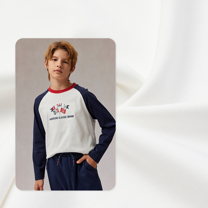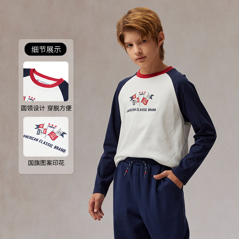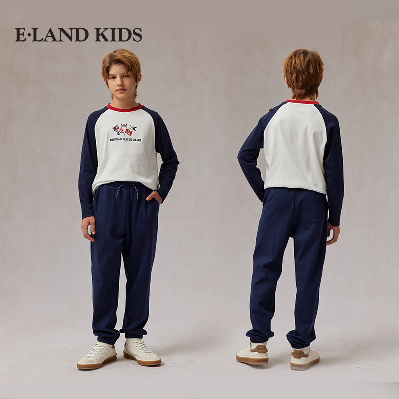 云柔棉 新品 eland 男童T恤25年春秋季 学院风长袖 kids衣恋童装