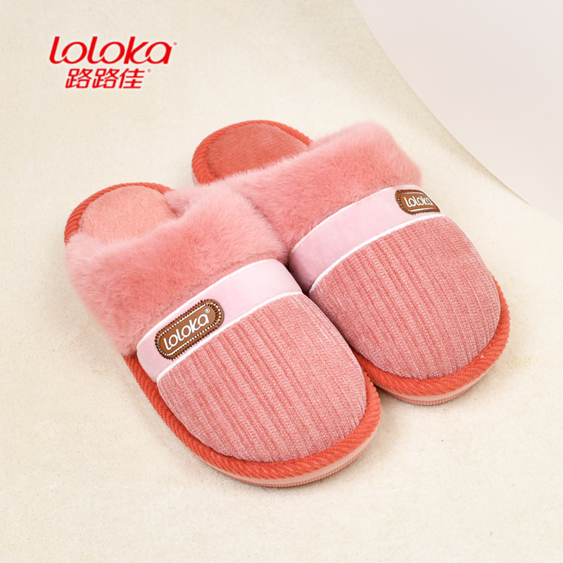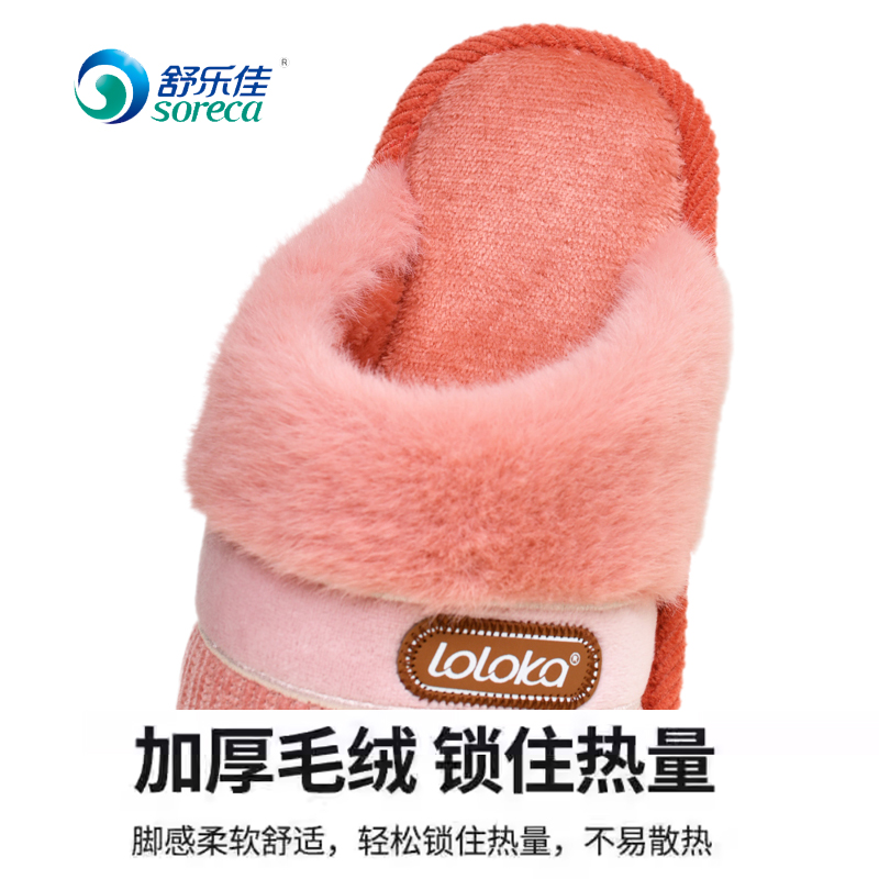 男冬天 居家保暖加绒防寒毛口情侣家用拖鞋 路路佳厚底棉拖鞋 女冬季