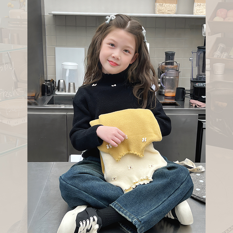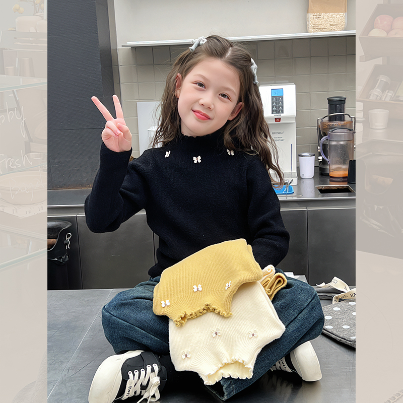 新款 加厚女童洋气打底衫 上衣2024冬装 儿童黑色毛衣大童装 针织衫