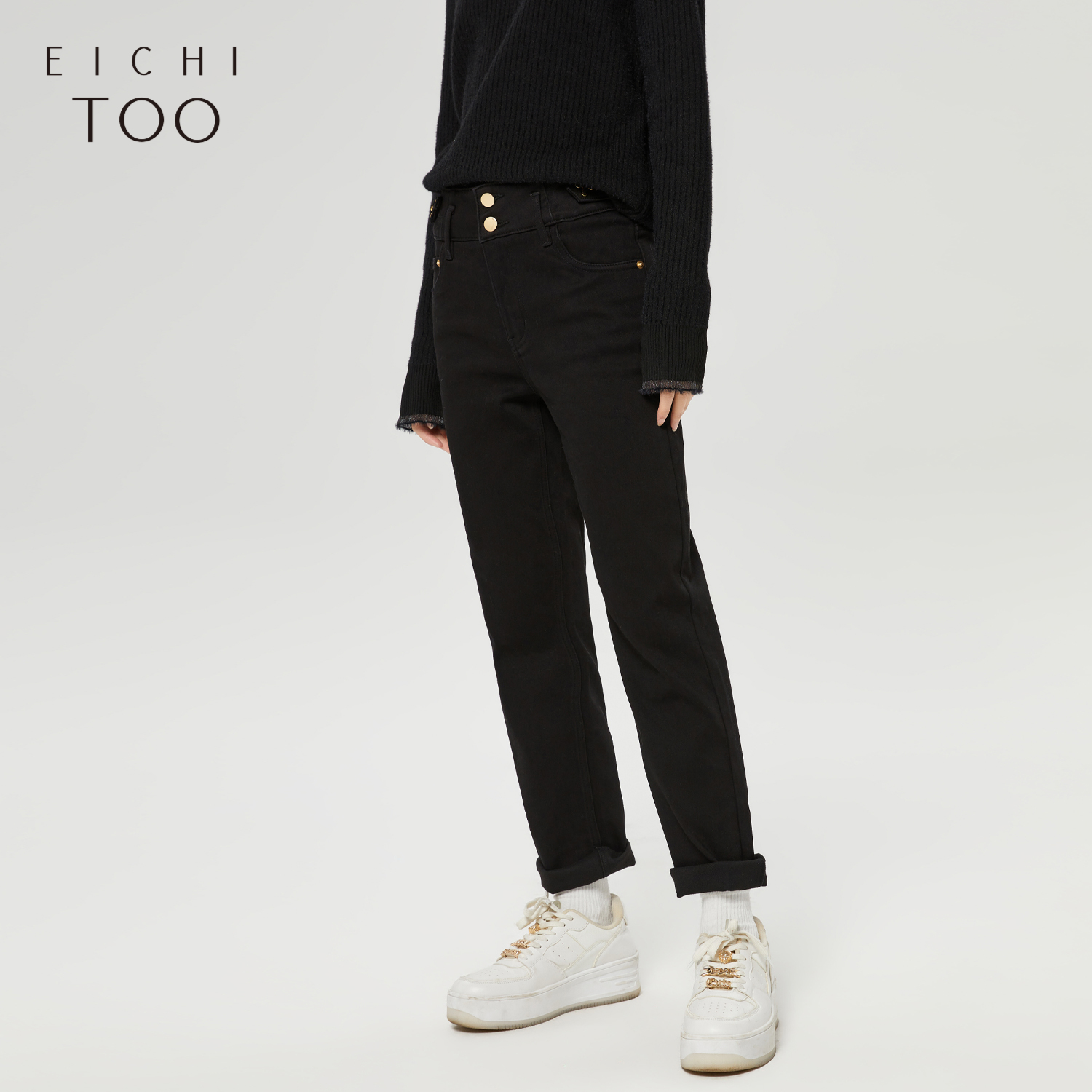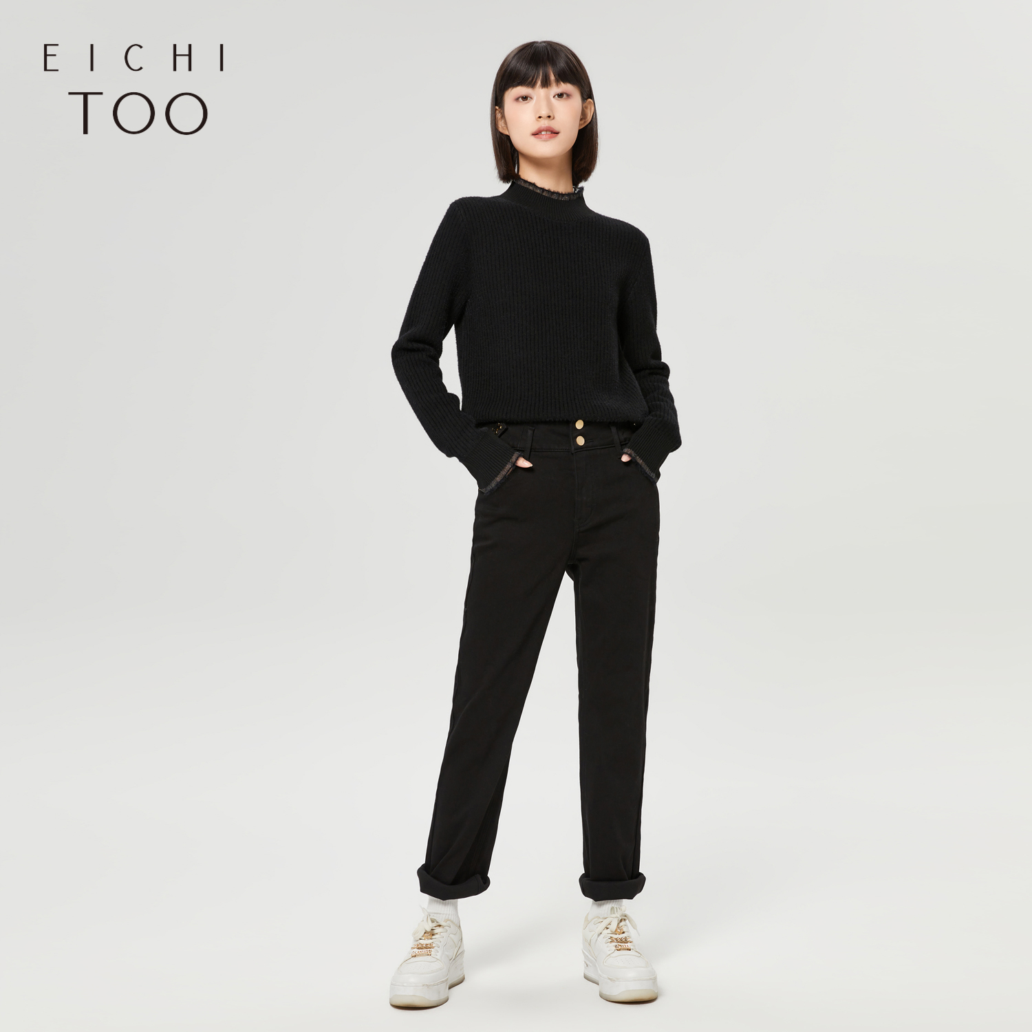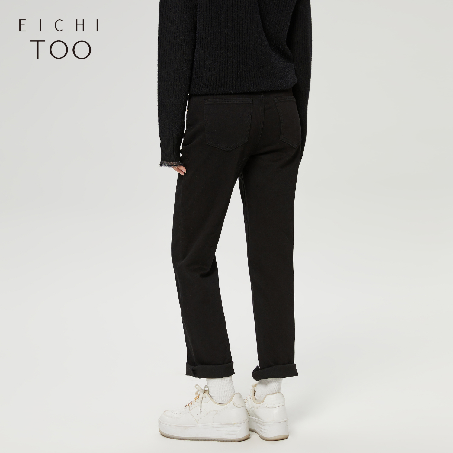 13415153 纯棉拼接中腰复古直筒牛仔裤 佐丹奴猫须牛仔裤 女秋冬新款