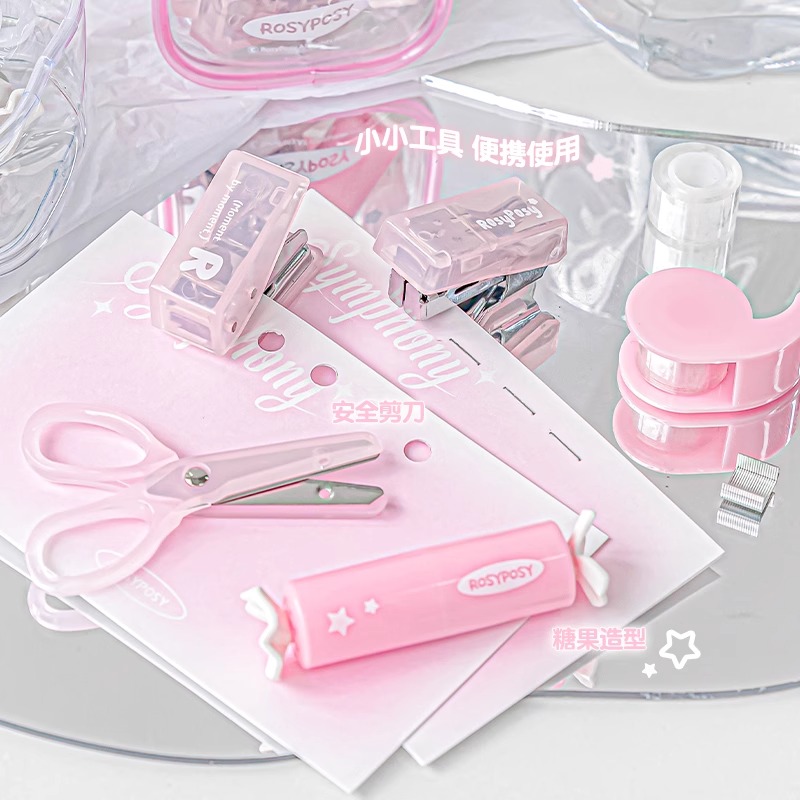 RosyPosy柔设订书机迷你订书机起钉器小号学生用女生可爱装 订用品订书钉机文具用品可爱风打孔器ins 订桌面装