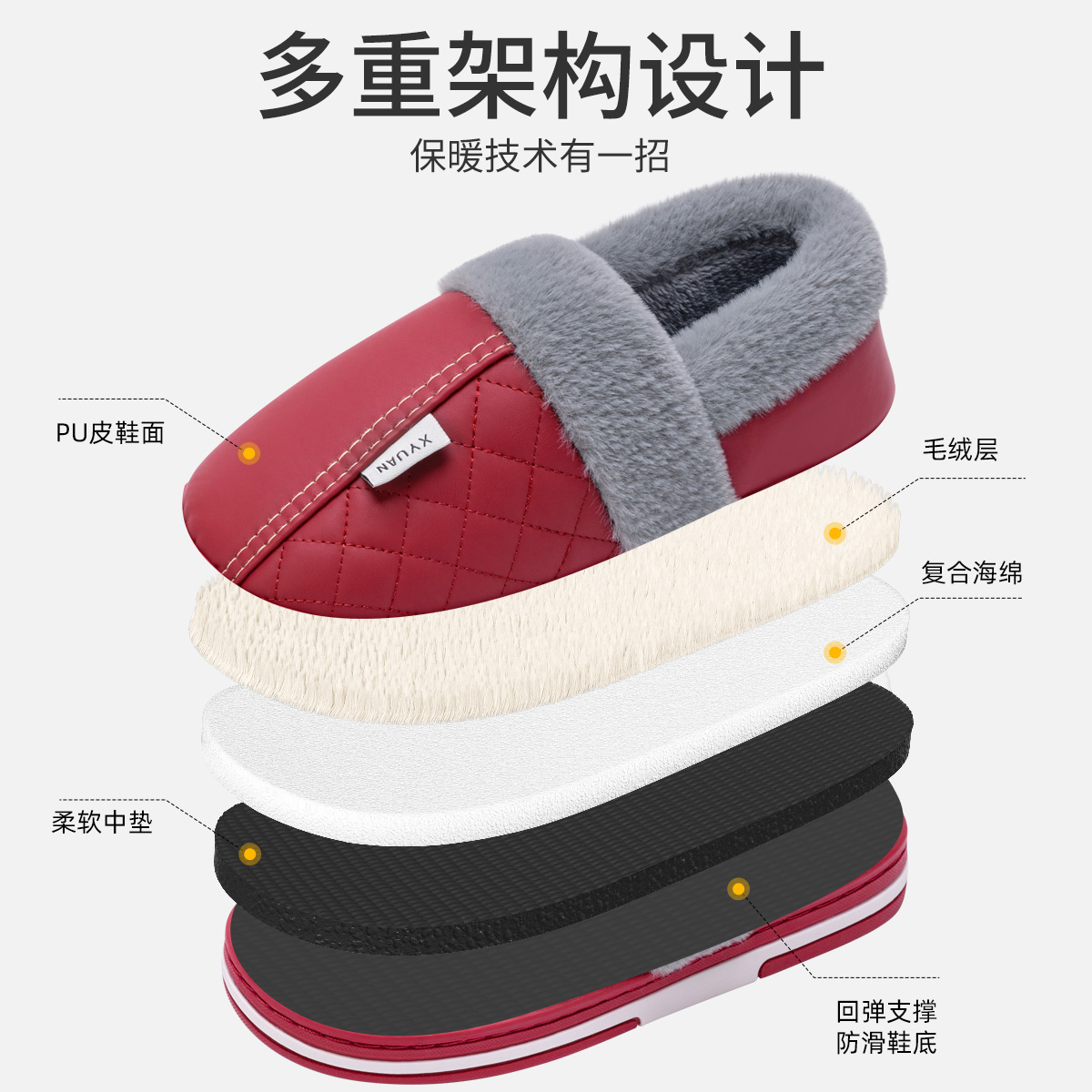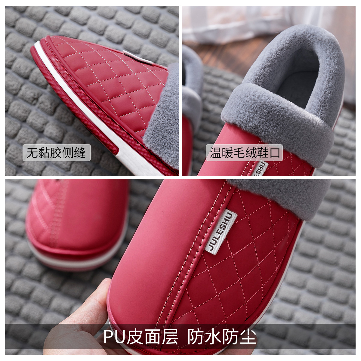 室内保暖加绒包跟防水棉鞋 中老人棉拖鞋 防滑2024新款 冬季 女士 女款